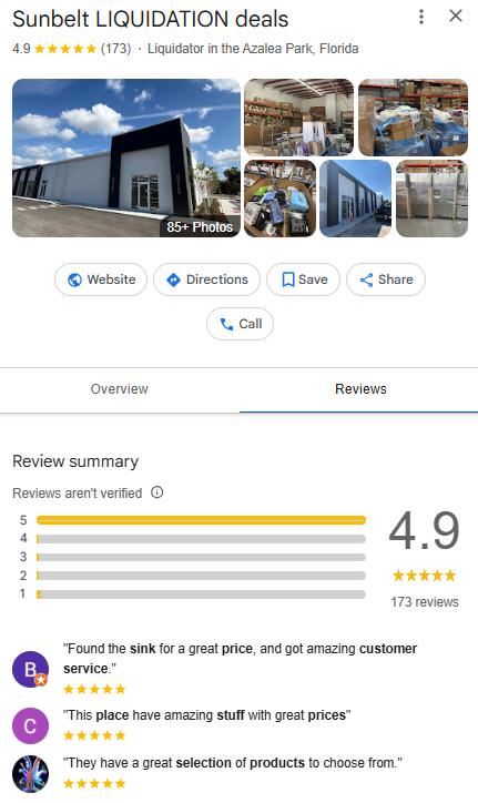 Google / Trustpilot reviews: Underdog Liquidation is praised by reviewers on Google for their wide variety of merchandise and helpful in-person assistance. On Google they have a rating of 4.9 based on 359 reviews. There is no verified Trustpilot business page.